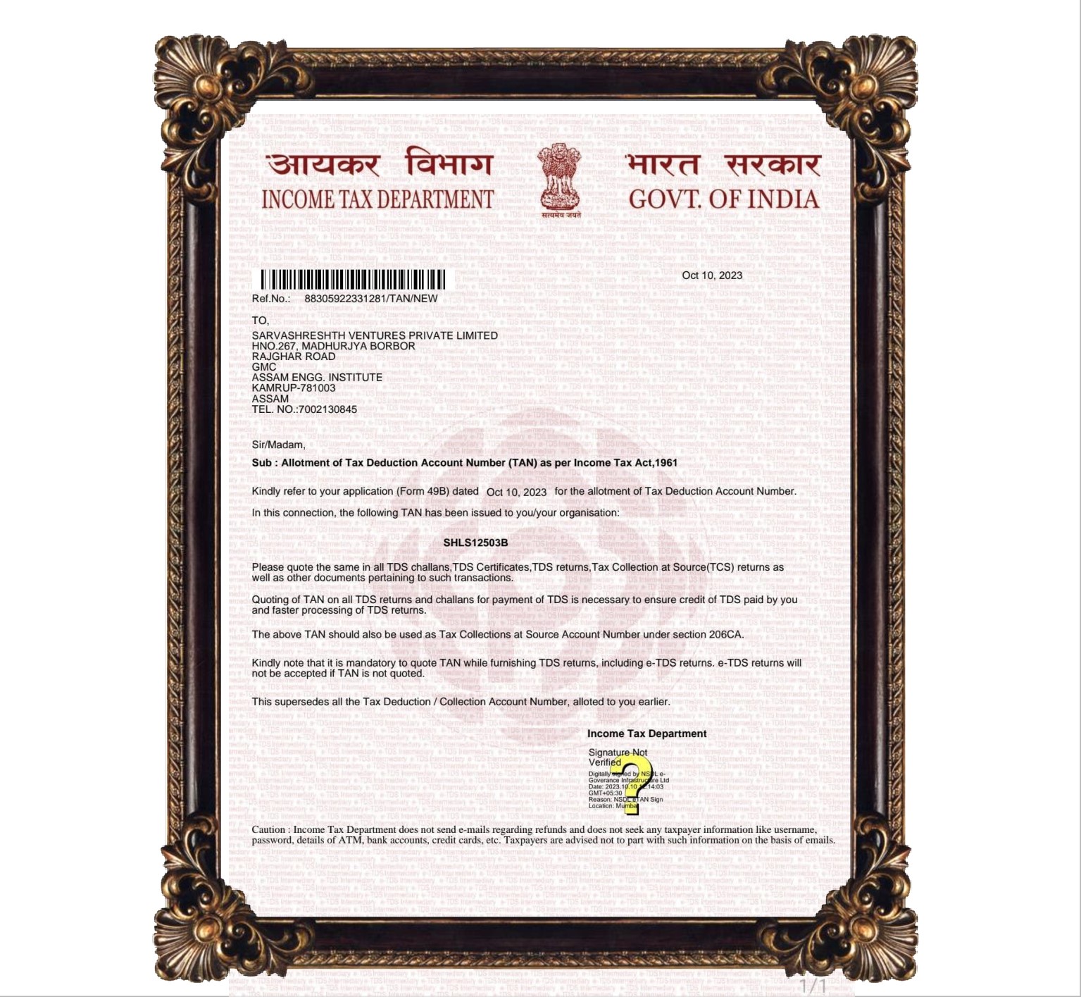 TAN (tax deduction and collection account number)